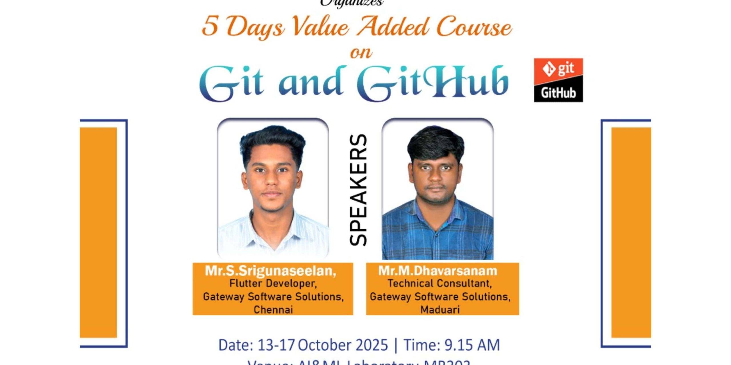 The Department of Artificial Intelligence and Machine Learning organizes a 5 Day Value-Added Course on Git and GitHub for their students