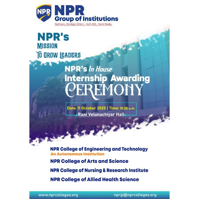 The NPR Group of Institutions organizes an NPR’s In-House Internship Awarding Ceremony for thier selected Interns
