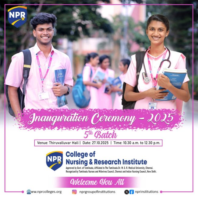The NPR College of Nursing and Research Institute organizes an Inauguration Ceremony for the 5th Batch of Students