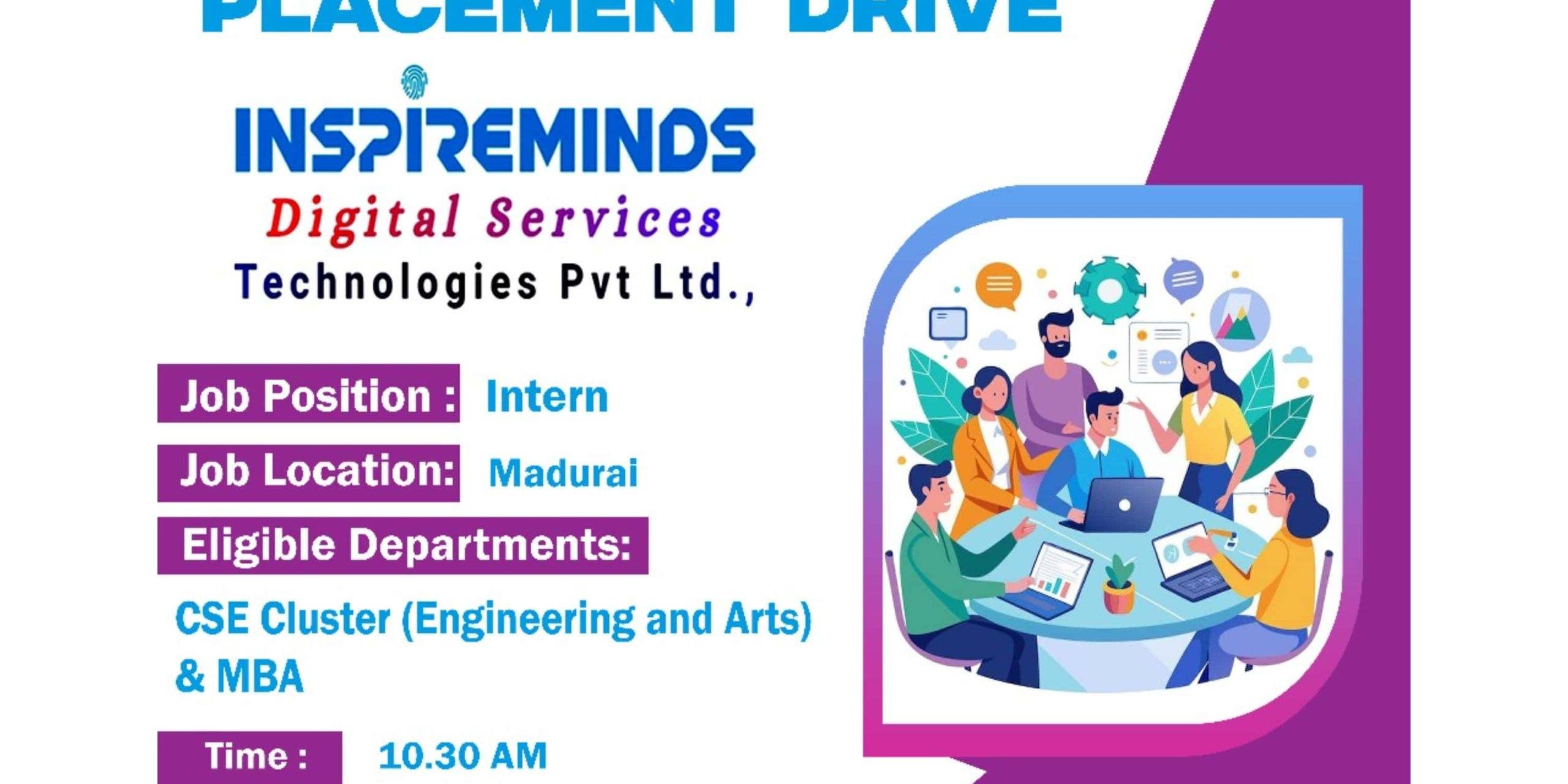 The Training and Placement Cell organizes an On-Campus Placement Drive – Inspireminds Digital Services Technologies Private Limited for their Senior Year Computer Stream Engineering students, Senior Year MBA Students & the Senior Year Computer Stream Arts and Science Students