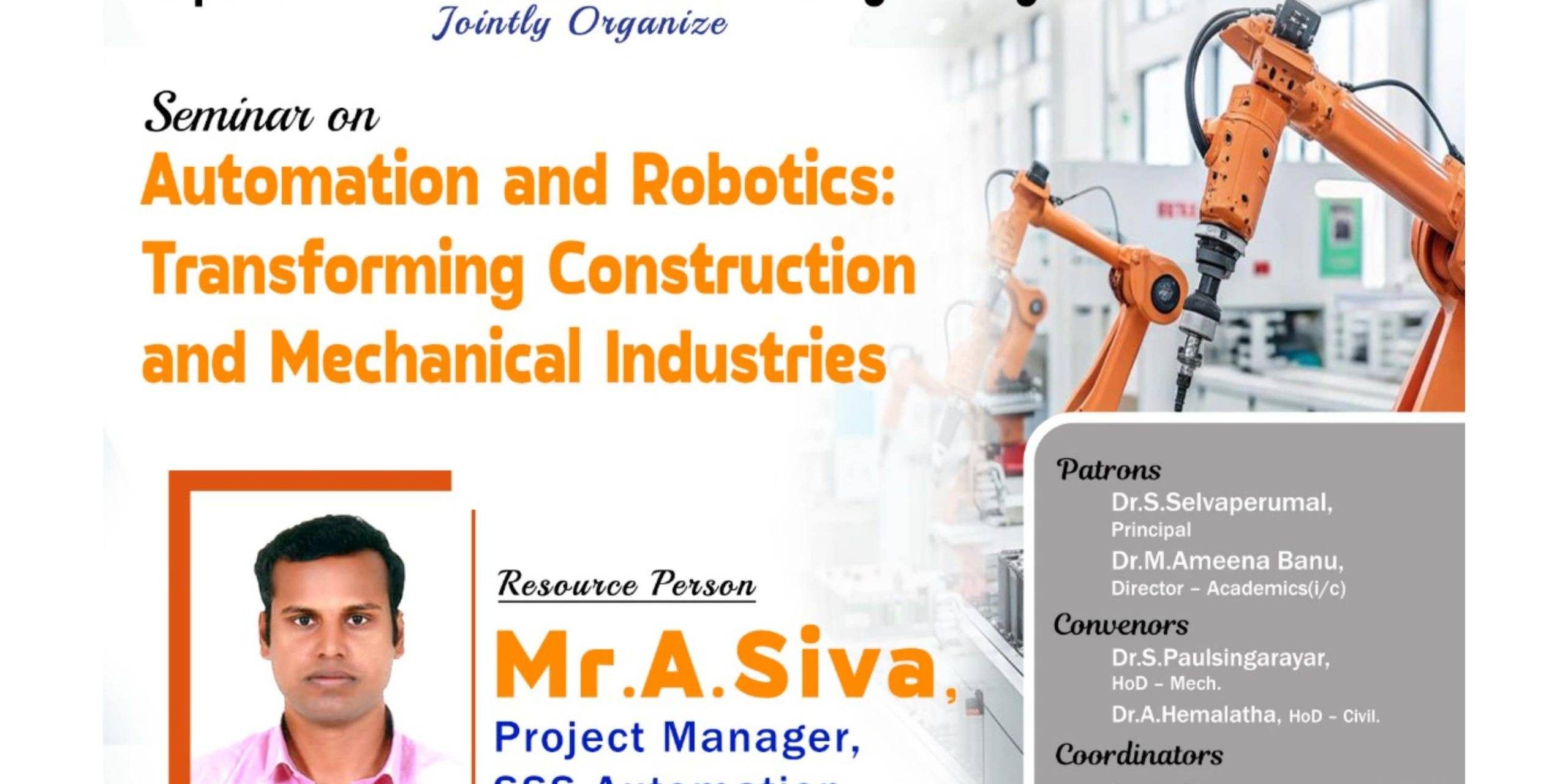 The Departments of Civil and Mechanical Engineering jointly organizes a Seminar on Automation and Robotics: Transforming Construction and Mechanical Industries for their students